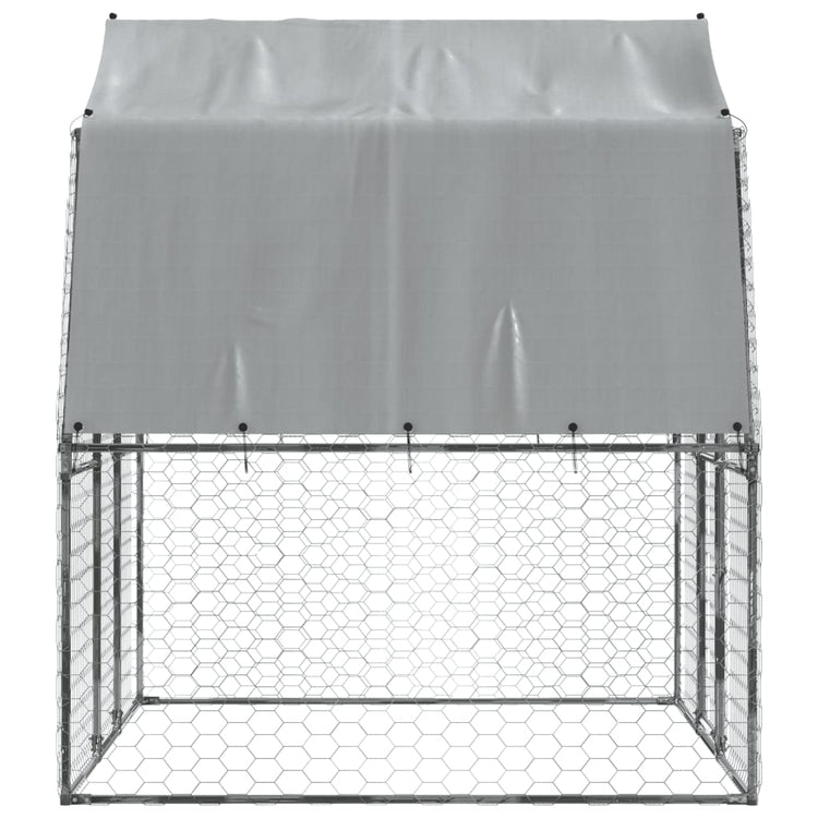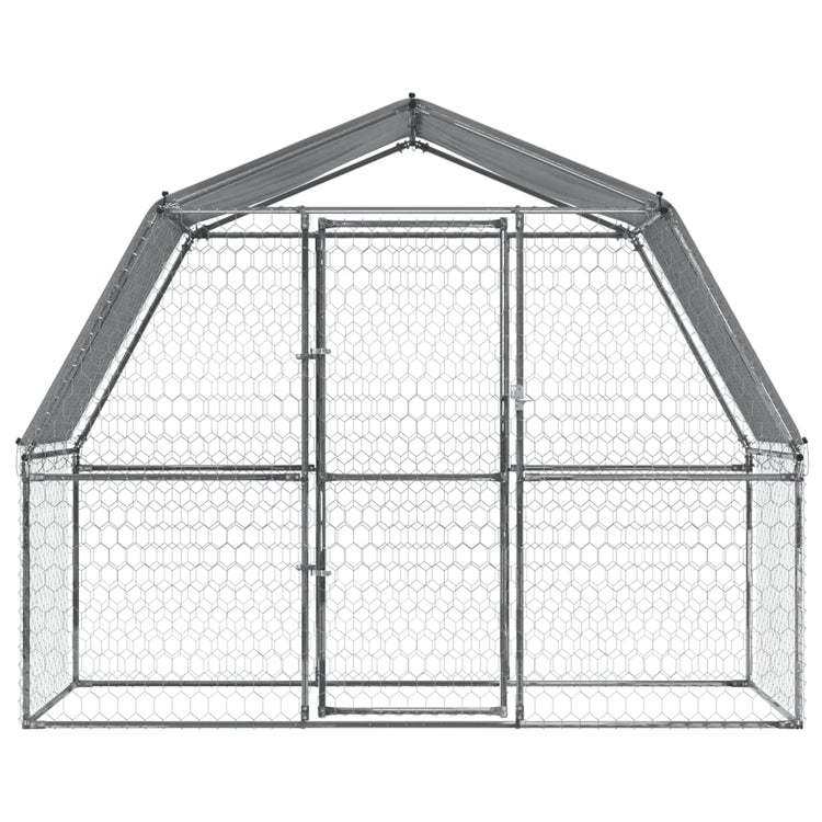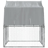 Keep your furry friends in a safe and comfortable space with this dog cage! Durable and sturdy frame: The dog cage is made of galvanised steel. Steel is an exceptionally hard and strong material. It offers sturdiness and stability. Galvanisation provides better protection against corrosion and is useful for products that'll be used outdoors as well as in harsh environments.Mesh design: The mesh design of the outdoor dog kennel helps prevent mischief and unexpected accidents while enabling ventilation.Water-resistant roof: The dog kennel has a polyethylene roof that is water-resistant and UV-resistant, providing protection from sun, rain, snow and other weather conditions.Ample activity room: The dog crate provides your dogs with ample activity room to walk around with ease. Besides, it is also suitable for other small animals such as birds, rabbits, ducks, geese, etc.Extra security: The hinged door with a lockable latch system of the walk in dog cage ensures extra security and safety for your furry friends.